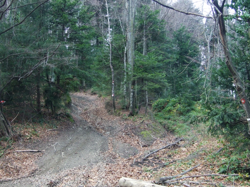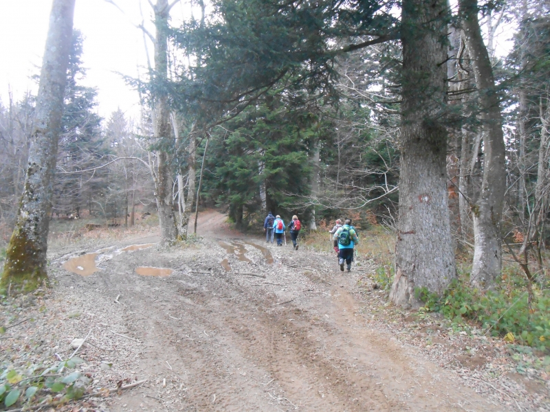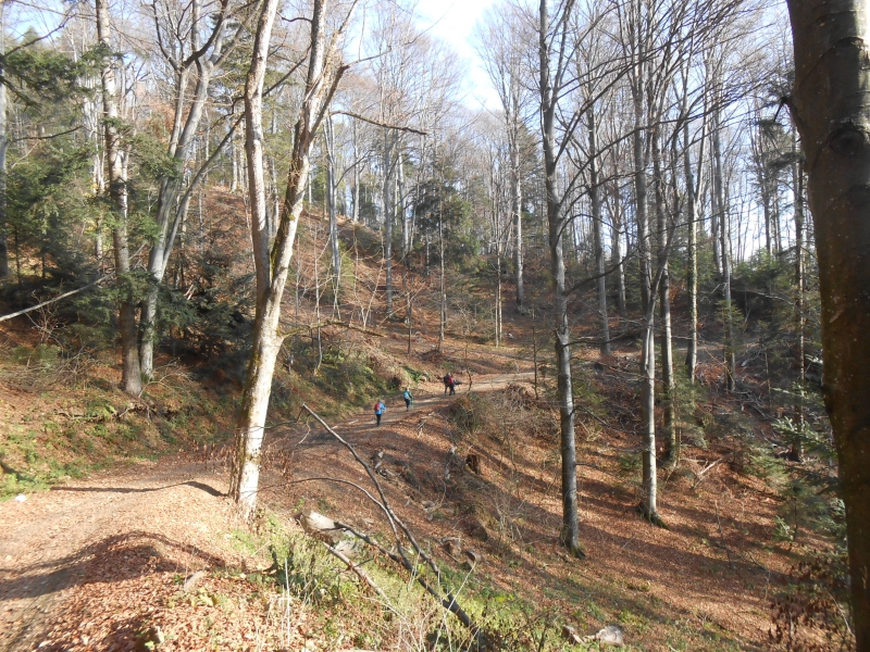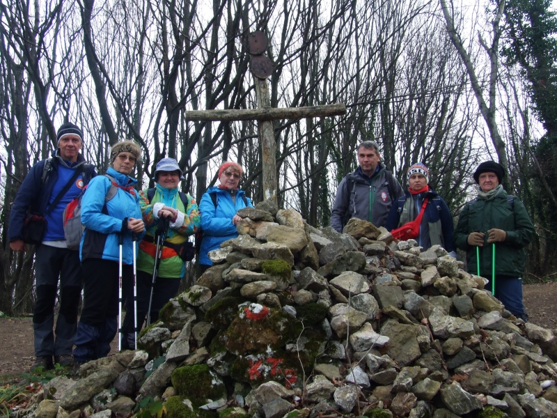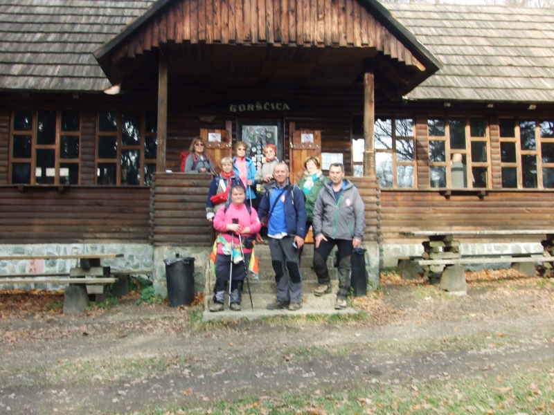 U subotu 25.11. ustali smo oko 7 sati, doručkovali, ukratko ponovili planiranu turu, podmirili troškove noćenja, pozdravili se s ljubaznim domaćinima i oko pola devet došli do Hunjke gdje smo zadnji puta završili hodanje Zagrebačkim romarskim putem. Raspelo na Hunjki je 5. postaja, odnosno kontrolna točka, pa smo se još jednom ispred nje fotografirali, a zatim nastavili markiranim putem grebenom prema Gorščici. Vrijeme je bilo oblačno, ali ne previše hladno, tako da je hodanje bilo ugodno.