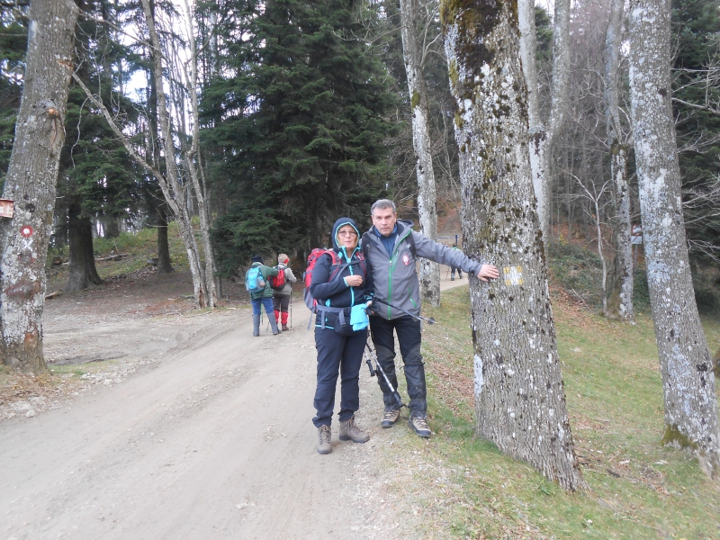 Sam put vodi uglavnom grebenom, ponegdje se blago spuštajući i podižući, tako da nije bilo naporno, a sve smo vrijeme bili okruženi lijepom bukovom i jelovom šumom, tipičnom za vršni dio Medvednice. Uživali smo u povremenim lijepim pogledima na Zagorje i u dobrom raspoloženju nakon dva sata hoda stigli na Gorščicu. Putem smo susreli podosta planinara različite dobi koji su išli u našem i suprotnom smjeru, a bilo je tu i brdskih biciklista i motorista, te nekoliko vozača kvada. Medvednica se pokazala kao vrlo posjećena planina, na što mi baš i nismo navikli. Gorščica je lijepa travnata visoravan na kojoj je na ostacima stare Kaptolske lugarnice podignuto novo planinarsko sklonište, sa klupama i stolovima, izvorom pitke vode i kapelicom. Ondje smo se malo odmorili, razgledali, fotografirali se ispred kapelice, koja je 6. postaja romarskog puta, te nastavili dalje prema Rumlecu. Nakon sat vremena hoda, stigli smo na Rumlec, gdje se markirani planinarski put odvaja prema Lipi i Rogu. Rumlec je križanje puteva sa izvorom pitke vode. Ovdje smo pod nadstrešnicom namjenjenoj hodočasnicima napravili pauzu za ručak. Nakon toga smo krenuli putem prema Lazu Bistričkom, odnosno Mariji Bistrici. Ovdje se put spušta i naizmjenično prolazi šumom, pašnjacima i livadama sve do Laza Bistričkog i sljedeće postaje romarskog puta kod crkve sv. Juraja za što nam je trebalo dva sata hoda. Naše hodanje završilo je u 14.00 sati.
