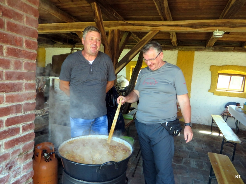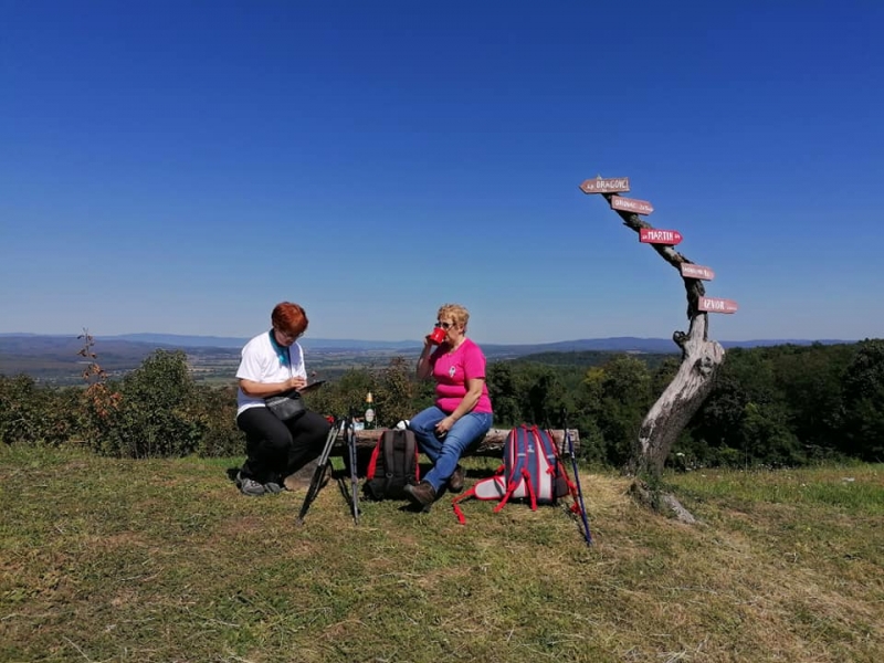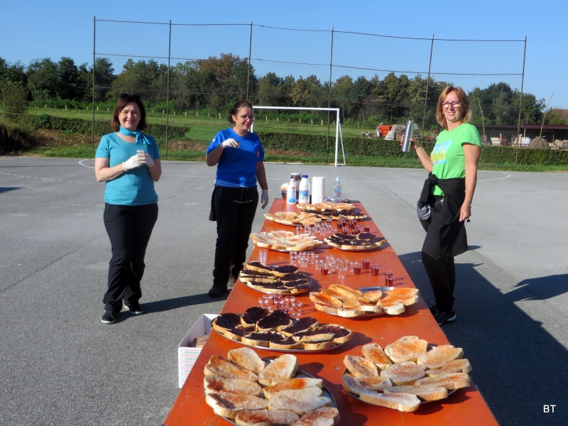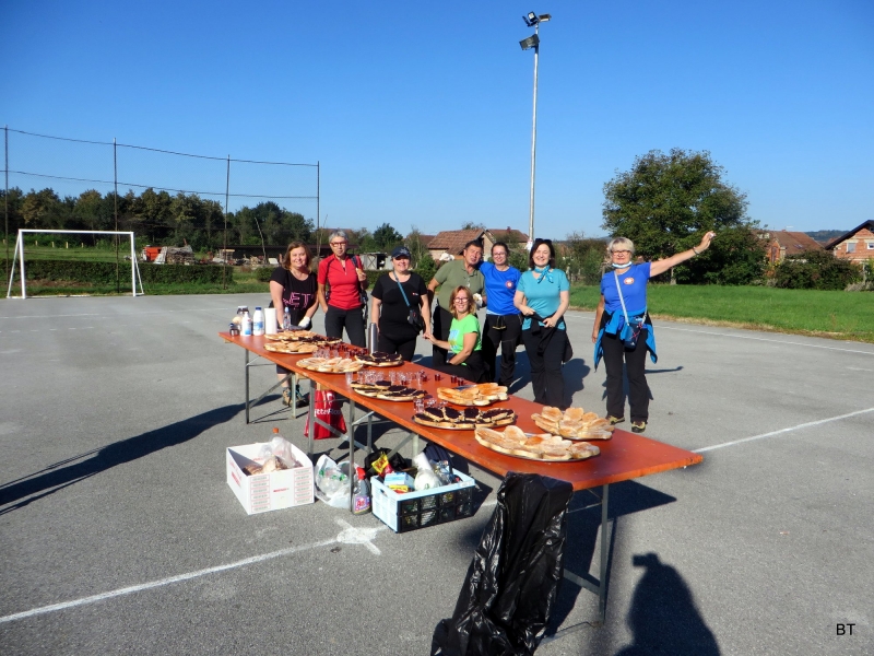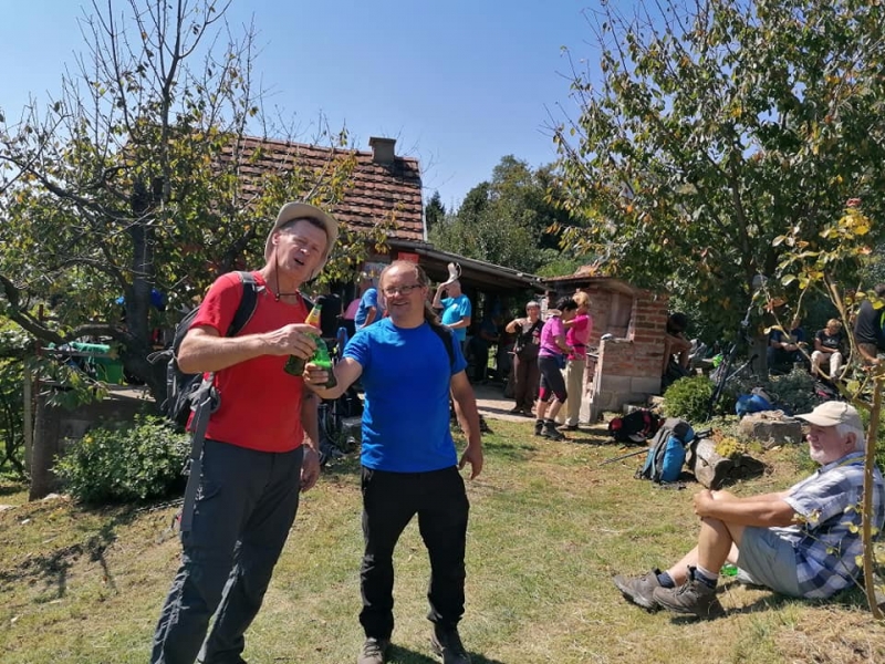 Naime, domaćini, ali i neki Zanatlije, primarno Zanatlijke, jako su se potrudili u organizaciji dočeka i ručka. Sigurno sve zanima što smo jeli i pili pa ću vam reći da nas je kod gospon Andrije Štampara dočekao tradicionalni planinarski doručak kruha masti i izvrsnog domaćeg pekmeza od šljiva, voća k’o u Božjoj bašči, malo domaćeg pića za dezinfekciju iznutra (ipak se ponašamo odgovorno i poštujemo epidemiološke mjere), kavica… S dobrom okrijepom bolje se hoda, to svi znaju, a naši Zanatlije i Zanatlijke su se potrudili da svi dobiju svega. A tek na cilju… Grah domaćina je bio bolji nego zatvorski koji se kuha na veliko (znam, jela sam ga jedno vrijeme redovno), bilo je ljutkaste juhe, kaže kuharica od Hokaido bundeve, malih toplih langošica, ‘ladnog piva… A kolači… to vam je poseban doživljaj. Zanatlijke koje su ih pravile su poznate po Hrvatskoj i regiji po svojoj vještini i sve odreda su promašile zanimanje, trebale su peći kolače za novce. Ne mogu ni pobrojati kakvih je sve bilo kiflica, kolača i slatkih bakanalija, a svi su uspjeli! K’o naslikani! A fini… Da znate, nema loših, a niti samo prosječnih domaćica u Zanatlijama! I svima koji nisu bili s nama može biti žao. Drage žene (i muški kuhari), vi zaista svojim trudom i vještinama uvijek dodatno osvjetlate već ionako svijetli obraz PD Zanatlija!