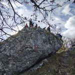 Za razliku od tmurne i kišne subote, na Kalniku docekalo nas je prekrasno sunčano vrijeme, taman za poželjeti. Krenuli smo puni energije i dobre volje. Staza „7 zubi“ traje otprilike sat vremena, a postoje dvije varijante – lakša, poučna staza te zahtjevnija koja uključuje korištenje ruku s obzirom na to da je bilo dosta penjanja. 11 planinara skupa s vodičem odlucila je iskušati onu izazovniju. Najzahtjevniji dio bio je treći zub, odmah na početku, ali uz puno međusobne pomoći i smijeha sve smo lakše savladavali, iako su neki odustali na prvom zubu (među njima i ja ), tuga dok ih gledam bila je jača od nelagode pa sam se ubrzo pridružila grupi na drugom zubu i uspješno došla do kraja.