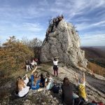 Bitoraj nam nije bio suđen. Nepovoljna vremenska prognoza za nedjelju omela je naše planove, ali ne i vodiče. U subotu navečer reorganizirali su se i pao je novi plan – nedjelju provodimo na Kalniku. Pogled na Stari grad Veliki Kalnik predstavlja potpunu suprotnost suboti – sunce obasjava još itekako bujne krošnje vedrih boja, upravo onakve kakve smo crtali kao djeca pokušavajući dočarati jesenski ugođaj. Pred nama su bile dvije staze, a samim time i dvije opcije. Dio ekipe zaputio se na Stazu 7 zuba, dio se do KT Vranilac popeo poučnom stazom. Južna strana uspona do vrha pružala je idiličnu šetnju kroz šumu, dok je sjeverna strana na koju su se sa zuba spustili pojedinci, na određenim dijelovima ipak bila izazovnija. O izazovima sa Staze 7 zuba ne bih previše znala. Sve olakotne i otegotne okolnosti s tog puta opisat će zubić vila i jedna od dvije glavne mačke, Nina. Kako bilo, svatko se svojim putem popeo na KT Vranilac (643m), s kojeg puca pogled na prekrasan jesenski krajolik. Nakon zajedničke fotke koja je, kako kaže jedan naš vodič – jedna od najboljih ikad – spustili smo se jednostavno i s guštom. Nakon pauze od sat vremena koju smo proveli na terasi/u okolici Planinarskog doma Kalnik, (nekima nije bilo dosta uspona pa su se penjali i na tvrđavu Stari grad Kalnik – bome, vrijedilo je) zaputili smo se kući. Iz dobre atmosfere i planinskog zraka nazad u realnost jer – što da se radi.