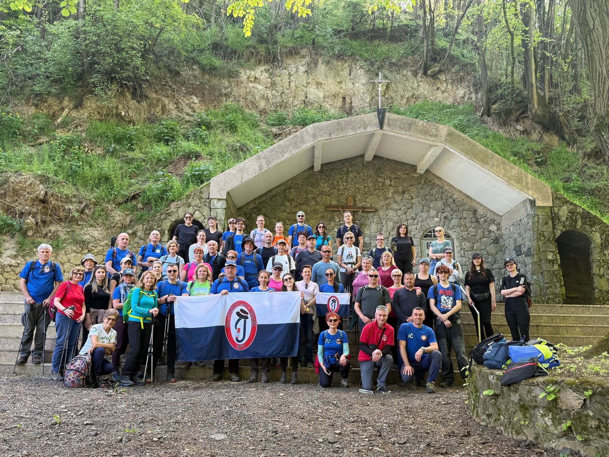 Laganim tempom kroz šumu stigli smo do Aljmaša za manje od sat vremena. Prva stanica bila je Gospina kapelica pod Lipom, mirno mjesto s izvorom vode, idealno za kratku pauzu. Dio planinara koji su autobusom stigli izravno u Aljmaš iskoristio je vrijeme za obilazak mjesta ili posjet crkvi, a zatim su nam se pridružili.