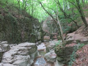 Preuzeto sa web stranice: Nedaleko Vesprema u Bakony-u. Vodopad poznat kao Római fürdő u blizini Bakonynáne smatra se jednim od najljepših mjesta u istočnom Bakonyju. To je očaravajuća dolina koja je, iako kratka, ipak impresivna i može se iskoristiti za dobar poludnevni izlet. Do Római fürdőa može se doći pješice označenom turističkom stazom. Možda je bolje pristupiti klancu iz Bakonynáne, jer je i gornji dio doline spektakularan. Počevši odavde, staza počinje odmah na početku sela, gdje autocesta prelazi potok. Prolazimo pored obnovljene zgrade Prémovog mlina, a zatim hodamo uz potok niz dolinu. Korito rijeke postaje sve dublje i dublje, a ubrzo drveće prekriva potok koji žubori u podnožju doline. Vrijedi napraviti kratki zaobilaz, jer tamo dolje na strani doline stijene nestaju, a voda potoka Gaja teče u divlje romantičnoj kamenoj klisuri.Ispod se dolina okružena šumama širi i nailazimo na turističko odmorište. Možemo uživati ​​u obroku na udobnim klupama. Logorišta su popularna planinarska odredišta za stanovnike Zirca i Veszpréma: planinare koji tamo odu često iznenadi miris pržene slanine ili gulaša od graha koji se širi ispod bukvi.
