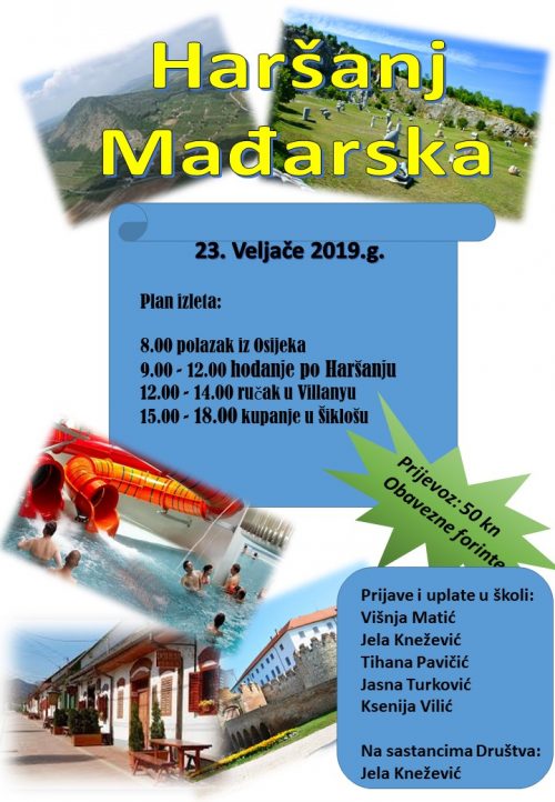 Napomena: prijevoz se uplaćuje pri prijavi u kunama, a ostalo na licu mjesta u forintama. Dakle, nužno je nabaviti forinte.