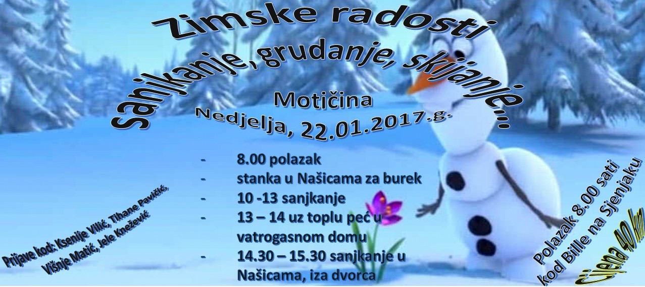 ZIMBA (zima u Baranji) Dana 18.02.2017. (subota) organiziramo odlazak na izlet Zimba POLAZAK U 08.00 SATI –sa parkirališta kod Bille - Sjenjak, povratak u večernjim satima PRIJEVOZ – AUTOBUSOM – CIJENA IZLETA 30,00 KUNA HRANA – iz ranca ili grah po cijeni od 20,00 kn u ponudi domaćina PROGRAM IZLETA: Krećemo u…