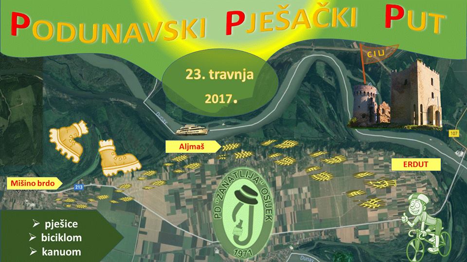 Poštovani, Čast i zadovoljstvo nam je pozvati Vas na Podunavski pješački put koji će se ove godine održati po osamnaesti puta dana 23. travnja 2017. godine u organizaciji Planinarskog društva „Zanatlija“ Osijek. PROGRAM: - Polazak autobusa iz Osijeka u 7:30 koda autopraonice iza Bille Sjenjak…
