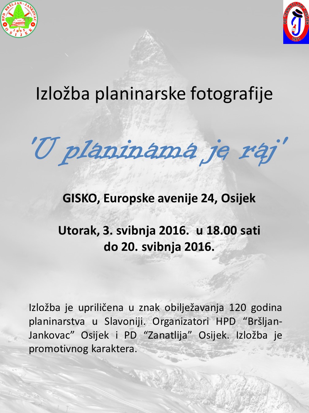 OBAVIJEST za planinare koji idu na VPP i Julijske alpe... Molimo vas da zbog potreba rezervacije smještaja i prijevoza izvršite uplate akontacija, a do kraja svibnja 2016.g. i cjelokupan iznos. Uplate se primaju na sastancima Društva utorkom od 20 sati.